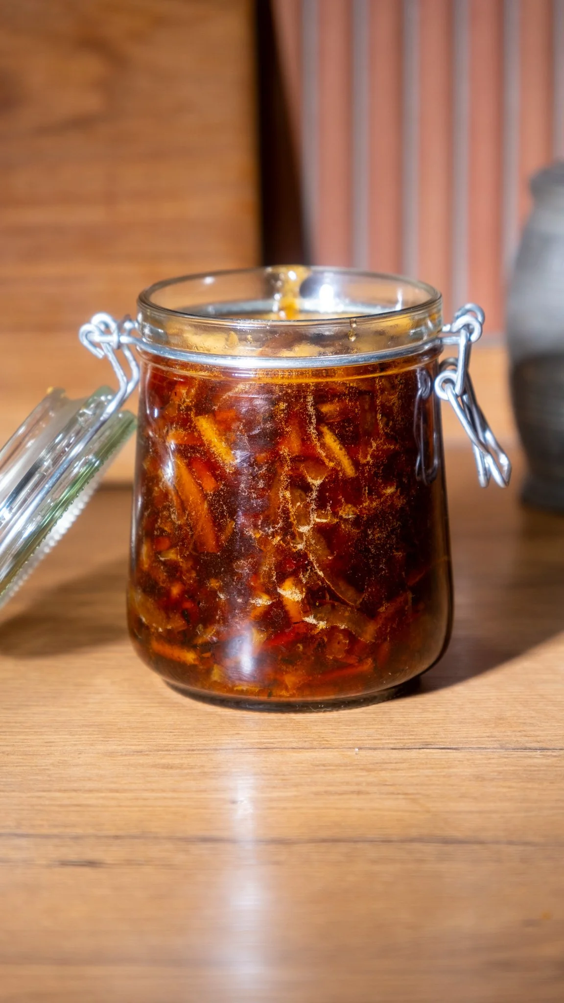 Das Produkt wird als „Chip Marmalade“ beworben – besonders verdauungsfördernd, durch die enthaltenen Schalenstücke.