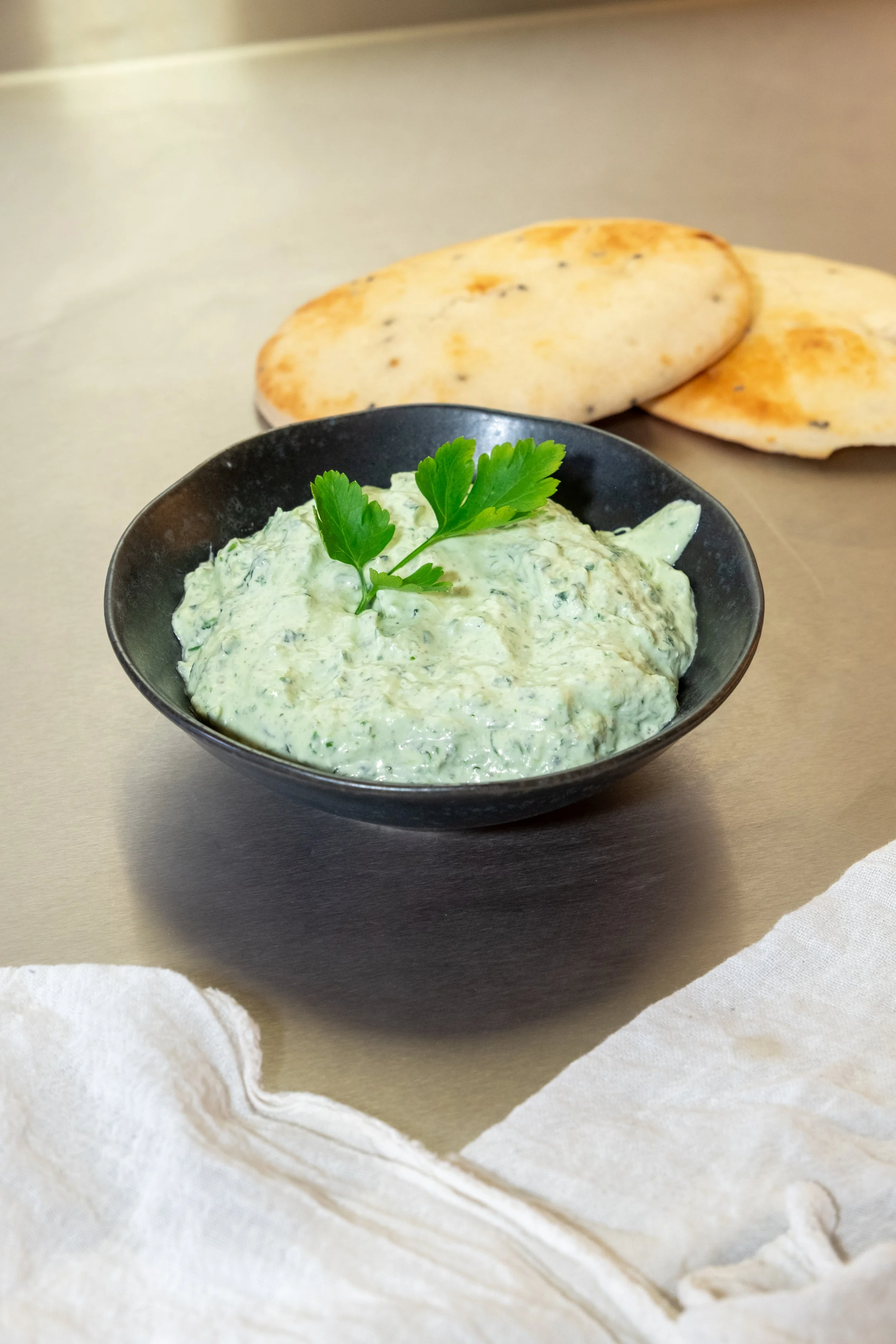 Direkt aufs Brot streichen oder mit Fladenbrot und Olivenöl genießen.